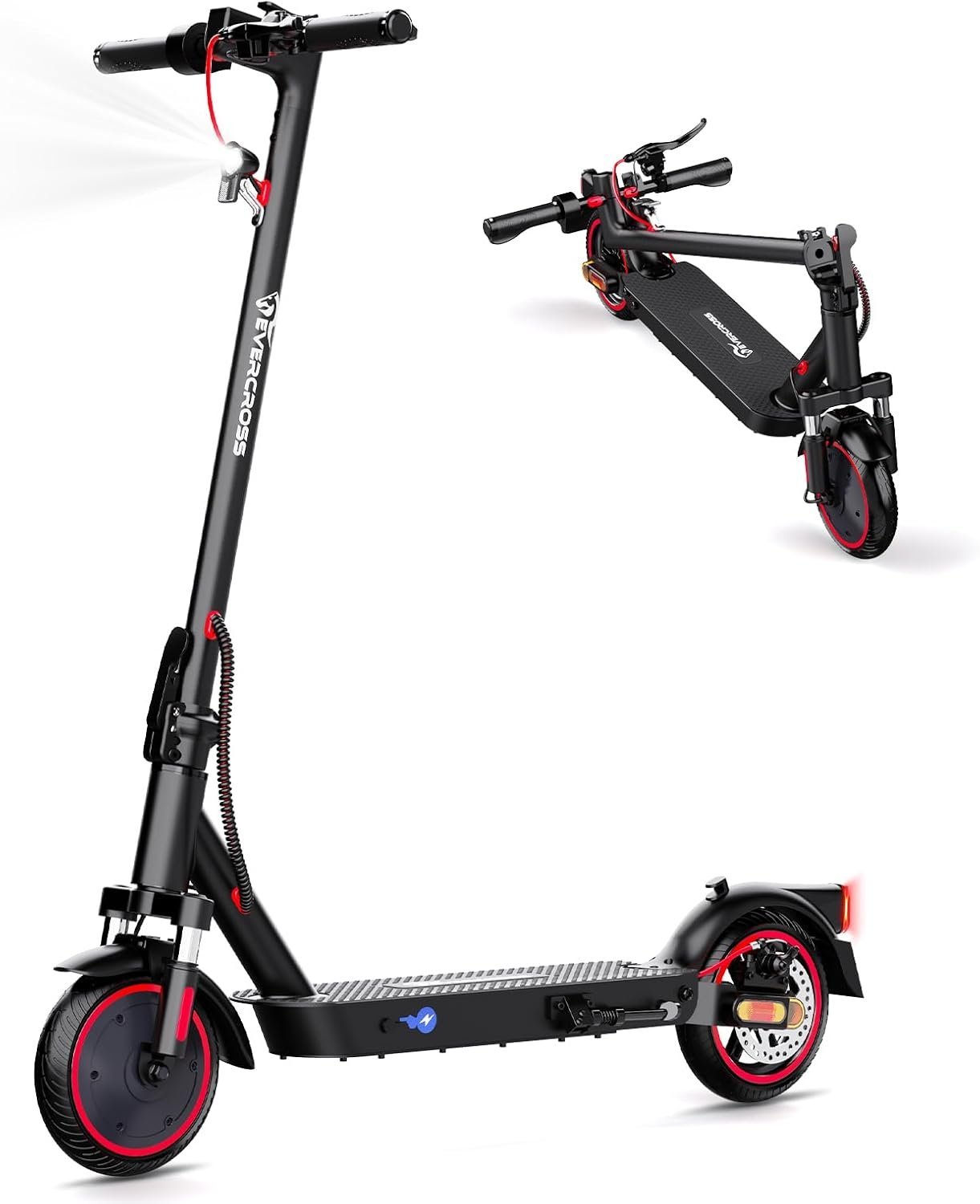 Der e roller verfügt über eine Scheibenbremse und ein regeneratives Antiblockiersystem EBS. Es kann Ihre Sicherheit gewährleisten. Der e scooter hat eine eingebaute Klingel. Hat sowohl Kopf- als auch Rücklichter, von denen letzteres schnell blinkt, wenn Sie auf die Bremse treten. Sicheres Fahren bei Nacht mit dem LED-Frontlicht und dem roten Rücklicht.